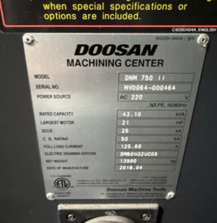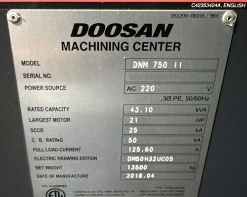 | title | Doosan DNM 750ii Vertical Machining Centers |