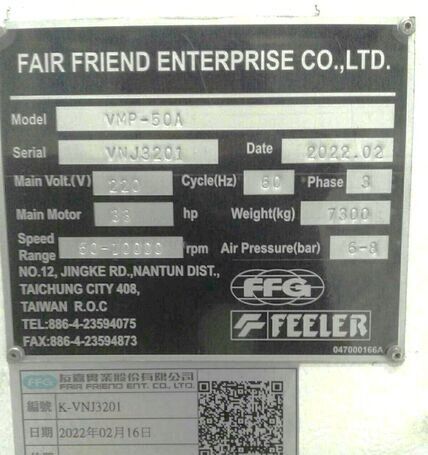 | title | Feeler VMP-50(A) Vertical Machining Centers |