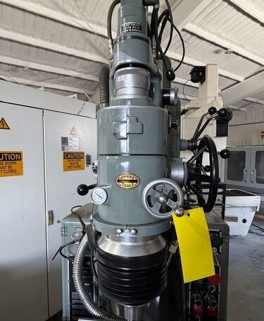 | 1981 Moore Model: G-18 Table size: 11″ X 24″ Table travels: Longitudinal – 19″ Cross – 11″ Table to wheel collet: 18″ max., 2″ min. Spindle column ways: 10″ Spindle speeds from 40 to 250 RPM, Infinite Spindle feeds from 4 to 240 SPM Spindle travel: 3 5/8″ Machine equipped with: Moore 40,000 or 60,000 RPM spindle Sony Model LH70-2 2 Axis DRO with 0.0001″ resolution Electrical motors and controls Dimensions: FB X RL – 80″ X 65″ Height: 102″ Est. weight: 3800#