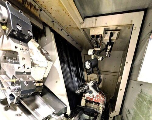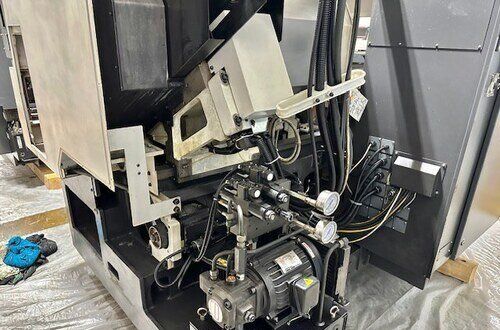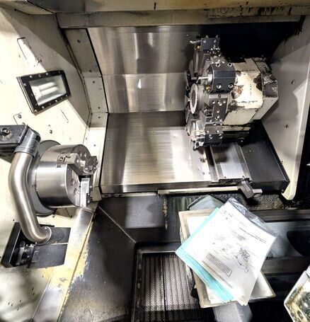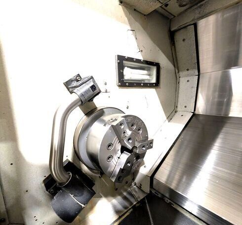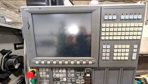 | OSP-P300L Control 10” Hydraulic Chuck Tailstock Chip Conveyor. CHUCK SIZE: 10" LENGTH: 19.69" HOLE: 3.15 HORSE POWER: 15 SWING: 20.47" TAILSTOCK: Yes CHIP CONVEYOR: Yes