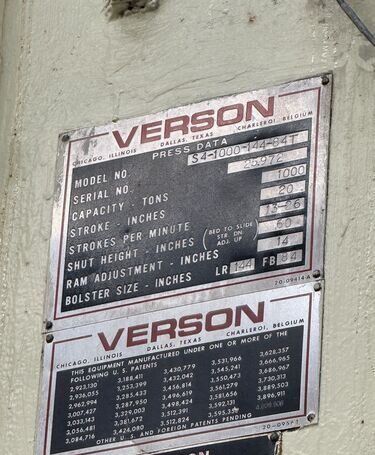 | title | Verson S4-1000-144-84T Straight Side Presses |