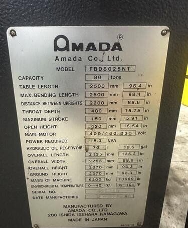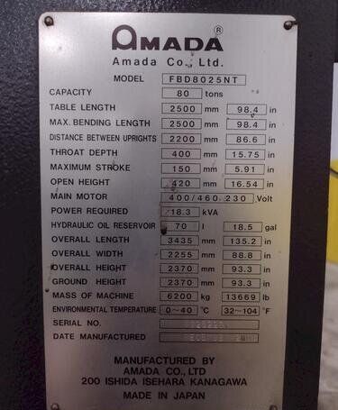 Amada Fbd8025nt Press Brakes