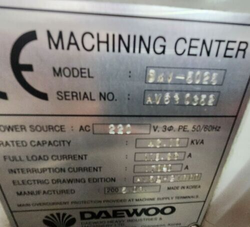 | title | Daewoo DMV 5025 Vertical Machining Centers |
