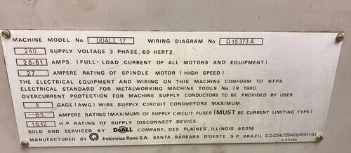 | Brand | DOALL ROMI |