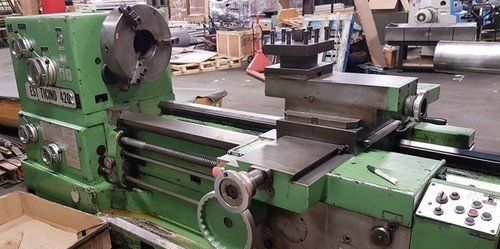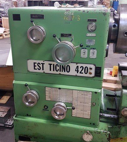 | EST TICINO SLIDING BED GAP LATHE MODEL: EST 420 33"/62" X 118"/181" Specifications: Swing over bed: 33-1/16" Swing over cross slide: 20-1/16" Swing over gap: 62" Distance between centers bed closed: 118" Distance between centers bed opened: 181" Maximum gap width bed open: 63" Spindle speeds (18): 6 to 600 RPM Spindle nose camlock D1-11 Spindle bore: 6-5/16" Headstock & tailstock spindle taper: #6 morse Longitudinal feed range (60): 0.0007" – 0.0335" Cross feed range (60): 0.000354" - 0.0165" Threading range (44): 3/16 - 44 t.p.i. Metric threading range: (35).5 - 96 mm Tailstock spindle diameter: 5-1/8" Tailstock spindle taper: #6mt Tailstock spindle travel: 11-13/16" Power rapid traverse for carriage & apron 3 and 4-jaw chucks faceplate, steady rest