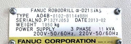 | title | Fanuc Robodrill ALPHA-D21SIA5 Drilling & Tapping Centers |