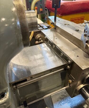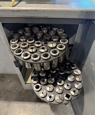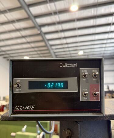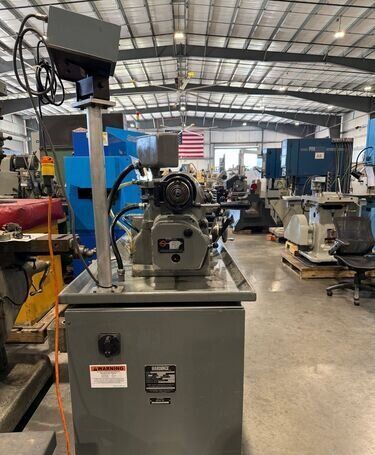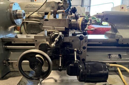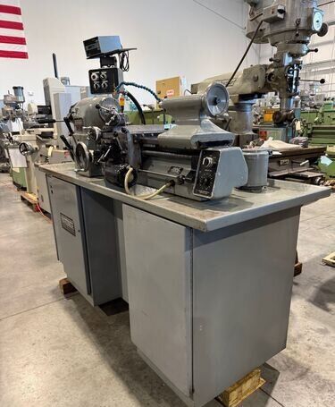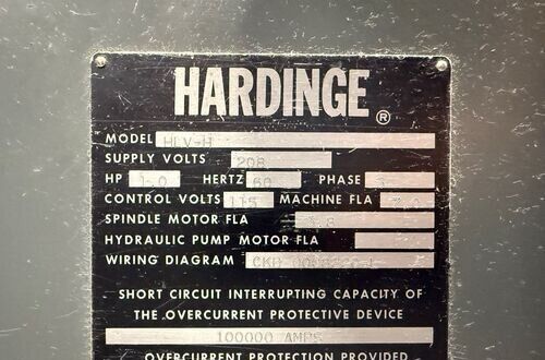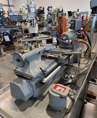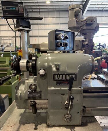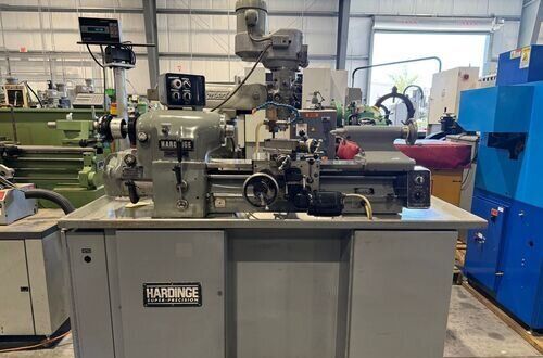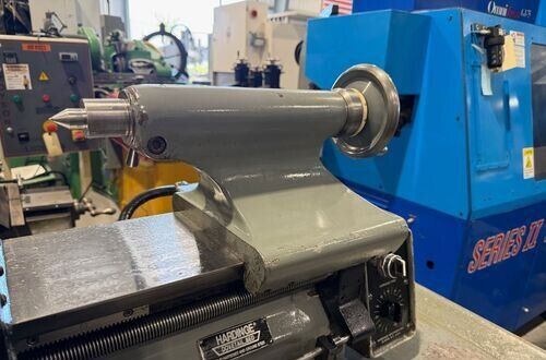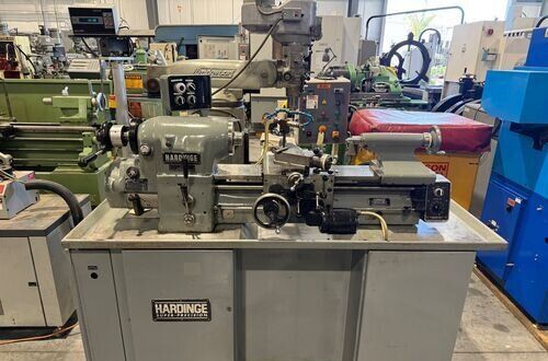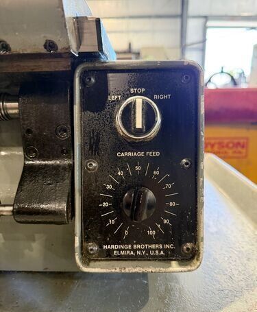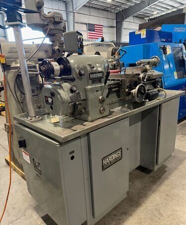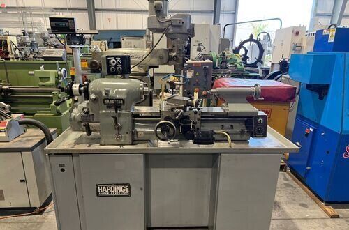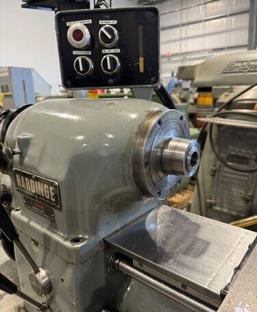 | Spindle nose is standard Hardinge taper SPECIFICATIONS: Swing Over Bed: 11" Swing Over Carriage: 9" Swing Over Cross Slide: 6" Distance Between Centers: 18" Spindle Thru Hole: 1-1/4" Spindle Nose: Hardinge Taper Collet Capacity: 1-1/16" Maximum Spindle Speeds: 125 to 3000 RPM Compound Slide Travel: 3" Power Feed Range: 1/4" to 7" per Minute Tailstock Travel: 3-3/4" Taper in Tailstock: #2 Morse (27) Threads: 11 to 108 Threads per Inch EQUIPPED WITH: Quick Change Gear Box for Threading (no end quadrant gears) Collet Closure 4" 5C 4-Jaw Chuck, 4" 5C 3-Jaw Chuck 5" 3-Jaw Chuck, (2) 4" 4-Jaw Chucks (3) 9" Face Plates Radius Turning Attachment 4-Way Tool Post Quick Change Tool Post with Assorted Holders Assorted 5C Collets Taper Attachment 1-1/2 HP Main Motor, Wired for 3 Phase, 50 Cycle, 400/440 Volts Coolant Pump, Work Light 3 KVA, 60 Cycle Transformer for 240 Volt Operation (Small Enough to be Wall Mounted) Overall Size: 72" L-R x 30" F-B x 65" High