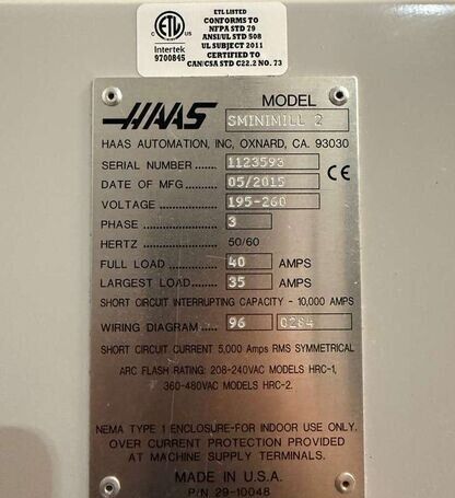 | title | Haas Super Mini Mill 2 Vertical Machining Centers |