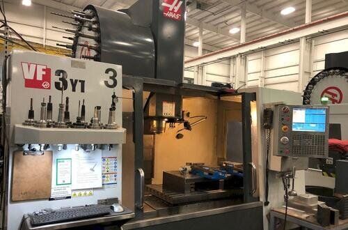 | Specifications: Control Haas Table Size 54"x25" Max Table Load 3,500 lbs X-Axis Travel 40" Y-Axis Travel 26" Z-Axis Travel 25" Spindle Nose to Table Top 4.5" – 29" Spindle Taper CAT 50 Spindle Speed 7,500 RPM Rapids 710IPM Spindle Motor 30 HP Tool Changer 30+1 Position Side Mount Equipped With: 4th Axis Pre-Wire 2 Speed Gearbox 30+1 Position Side Mount Rigid Tapping Color Remote Jog Handle Programmable Coolant Nozzle Chip Auger 1 MB Power Failure Detection Module USB Port Extended Z axis Clearance (adds 3") with low Profile table High Speed Machining Renishaw Probing System (WIPS) Thru Spindle Coolant (300 psi)