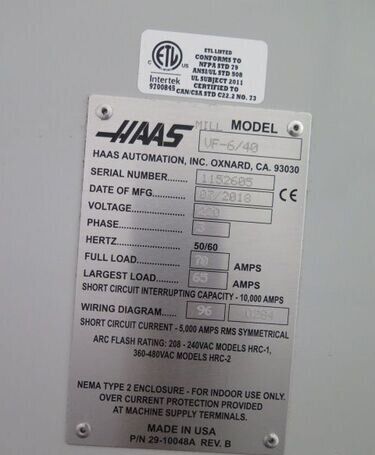 | title | Haas VF-6/40 Vertical Machining Centers |
