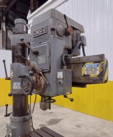 | Specifications: Model RMS-9 Manufacture Date 1978 Vertical Travel 22” Horizontal Travel 24” Power Elevation Yes Arm Clamp Manual Main Motor 2.2KW Equipped with: Box Table 18”L x 16”H x 26” W Heavy Duty Vise