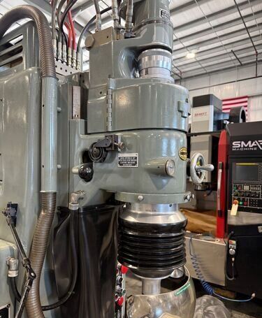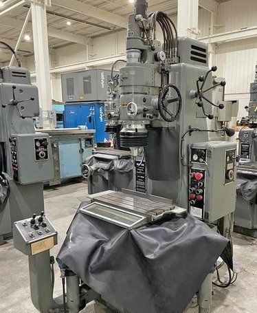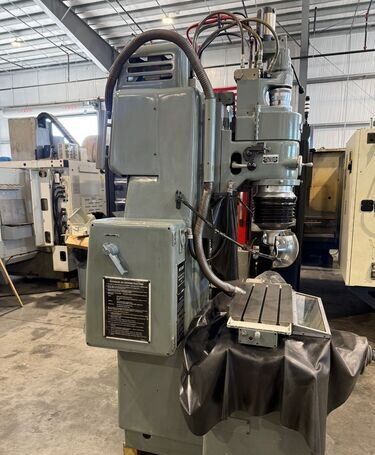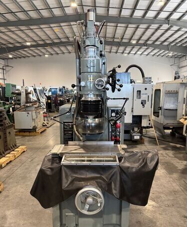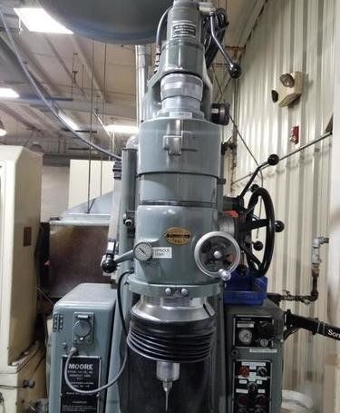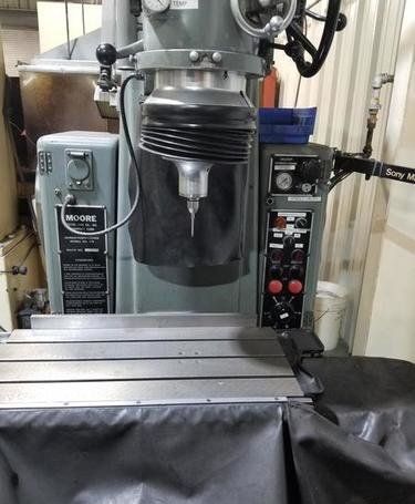 | 1981 Moore Model: G-18 Table size: 11″ X 24″ Table travels: Longitudinal – 19″ Cross – 11″ Table to wheel collet: 18″ max., 2″ min. Spindle column ways: 10″ Spindle speeds from 40 to 250 RPM, Infinite Spindle feeds from 4 to 240 SPM Spindle travel: 3 5/8″ Machine equipped with: Moore 40,000 or 60,000 RPM spindle Sony Model LH70-2 2 Axis DRO with 0.0001″ resolution Electrical motors and controls Dimensions: FB X RL – 80″ X 65″ Height: 102″ Est. weight: 3800#