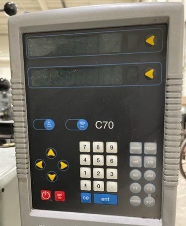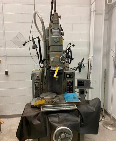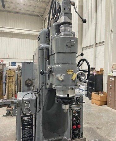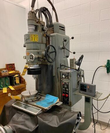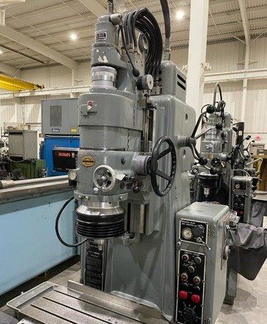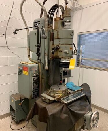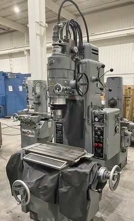 | Specification: Model # 3 New Date: 1960 Table Size: 11" x 24" Longitudinal Table Travel: 18" Cross Table Travel: 11" Spindle Head Vertical Travel: 12-5/8" (Manual) Spindle Travel: 3-5/8" (Power) Distance Table to Spindle: 2" Min. to 18" Max. Center of Spindle Back to Column Ways: 10" Center of Spindle Back to Below Column Ways: 13-1/2" Variable Spindle Rotation Speeds: 25 to 225 RPM Variable Spindle Feeds: 2 to 120 SPM Range of Hole Sizes That Can Be Ground: 1/64" to 3-1/2" Dia. Max. Dia. of Hole Ground with Extension Plate: 13-1/2" (NOT SUPPLIED) EQUIPPED WITH: (1) Grinding Head, Speed Rate Unknown (1) Machine Work Light Nylon Way Cover All Around Table Hard Square Box Style Ways in Good Condition Manually Adjustable Grinding Head Spindle Temperature Gage Micrometer Adjustable Head Carrier Stop Adjustable Air Control of Grinding Head (5) Grinding Head Rotation Speeds, Rate Unknown Adjustable Auto Feed Air Controller Central Lubrication System Air Regulator with Filter Bowl One Shot Lubrication System to Table Adjustable Plastic Grinding Shield Guard Wired for 3 Phase, 60 Hz, 440 Volts ONLY Overall Size: 49" L-R x 61" F-B x 86" High x 4,000 Lbs.