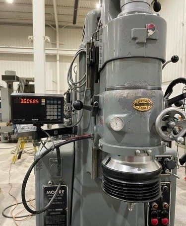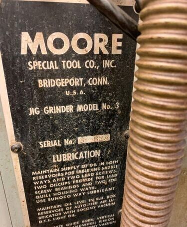 | MODEL #3 G-18 MOORE JIG GRINDER 60,000 RPM Spindle, 11" x 24" T-Slotted Table, Temperature Gage on Head, Sargon 2-Axis Digital Readout