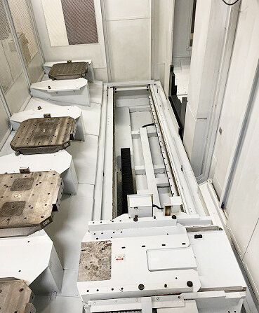 | Specifications: Pallet Size 24.8" x 24.8" x (2) Max Table Load 1,763 Lbs X Axis Travel 55" Y Axis Travel 47" Z Axis Travel 47" Spindle Taper CT50 Spindle Motor 50/40 HP Spindle Speed 8,000 RPM B Axis Full 4th Tool Stations 100 Chain Style Rapid Traverse Rates 1,968 IPM Max Tool Length 24" Max Tool Weight 66 Lbs Machine Weight 42,000 Lbs Machine Dimensions 234"L x 133"W x 135"H Equipped With: FS-31iA (MAPPS 4) CNC Control Chip Conveyor Full 4th Axis Coolant Tank & Pump Plumbed for TSC 6GB Memory 200 Offsets Custom Macros Tool Life Management Uni-Directional Positioning