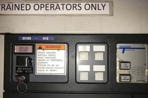 | MODEL/MAKE: SV400 X-TRAVEL: 23.6" Y-TRAVEL: 16.9" Z-TRAVEL: 18.1" SPINDLE SPEED: 12,000 PALLET SIZE: 34.4" x 19.7"