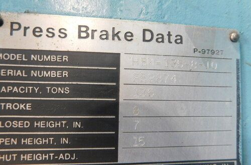 Niagara HBM-135-8-10 Press Brakes