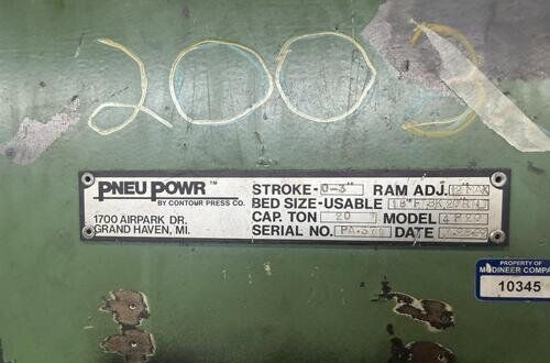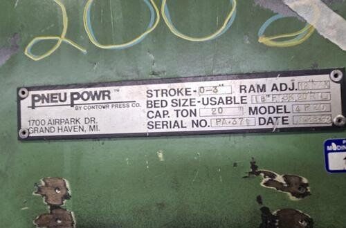 | title | Not Specified 4P-20CAPACITY 20 TON STROKE 0" TO 3" Pneumatic Presses |