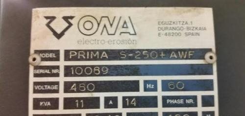 | title | Ona Prima S250 Wire EDM |
