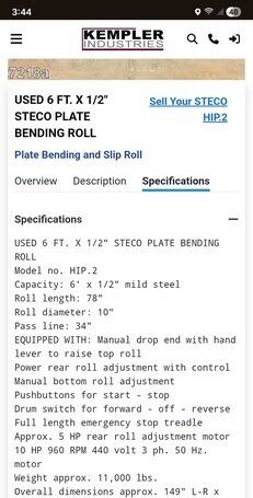 | title | Steco HIP-2 Plate Bending Rolls including Pinch |