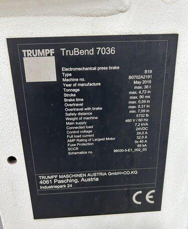 | Model | TRUBEND 7036 |