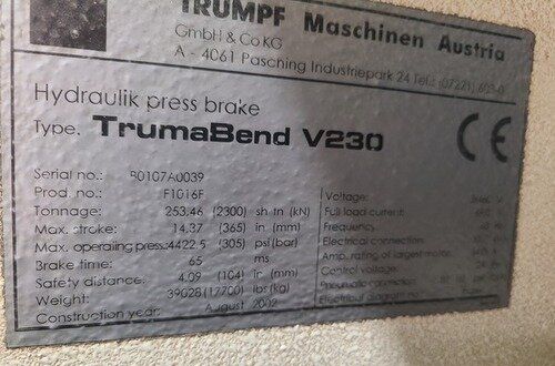 | Model | TRUMABEND V230 |