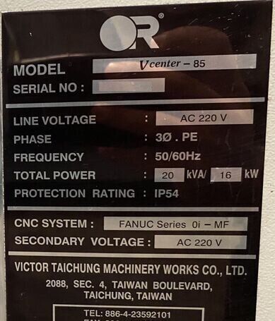 | title | Victor Taichung VCENTER- 85 Vertical Machining Centers |